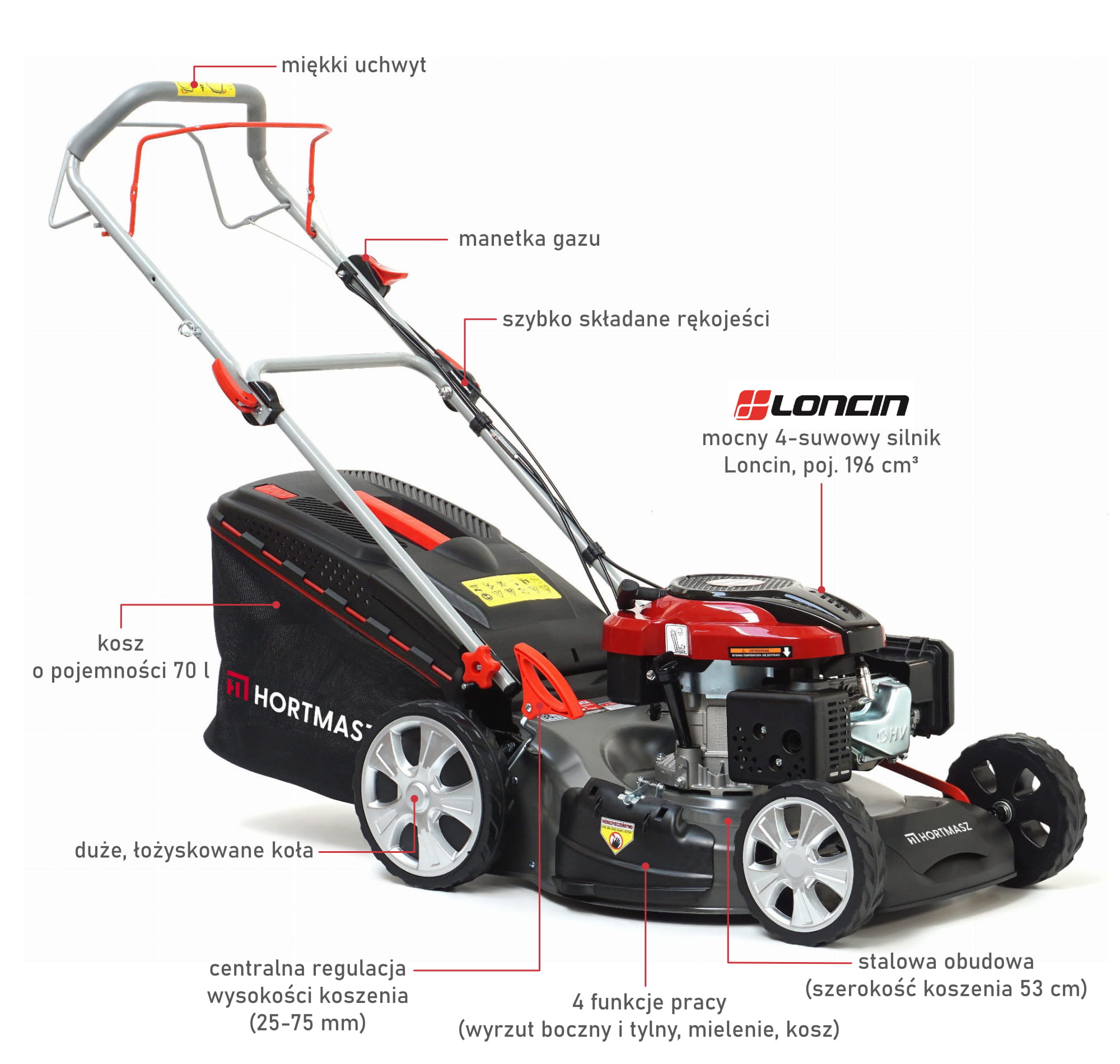 - Wysokość koszenia : 25-85mm