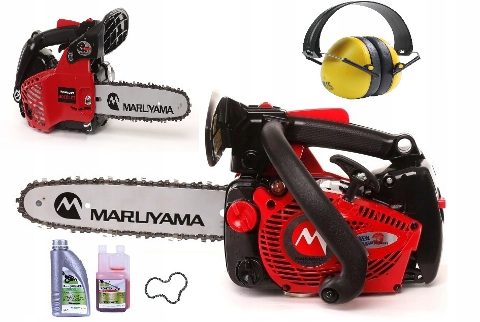 Piła łańcuchowa Maruyama z uchwytem do jednej ręki. Lekka i wydajna pilarka do użytku profesjonalnego, zaprojektowana w celu uzyskania najlepszych właściwości tnących i niedoścignionego stosunku mocy do wagi. Zaprojektowana z myślą o wygodzie i jak największym komforcie pracy użytkownika. Zastosowana technologia H.E.R.E zwiększa moment obrotowy silnika i jednocześnie ogranicza konsumpcje paliwa, a także emisję szkodliwych gazów. Duża żywotność silnika oraz podzespołów sprawia że pilarka sprawdza się w zawodowym jako pilarka łańcuchowa do sadu, jako dodatkowa pilarka lasach, w arborystyce, a także przy pracach domowych.
