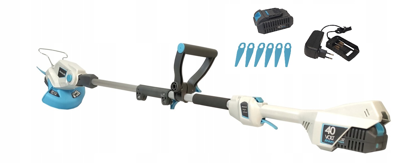 Lekkie i praktyczna podkaszarka akumulatorowa. Posiada mocny, wydajny akumulator o mocy 40V. Odpowiednio wyważone urządzenie, wyposażone w ergonomiczne uchwyty zapewniają pewny uchwyt i wygodę pracy.